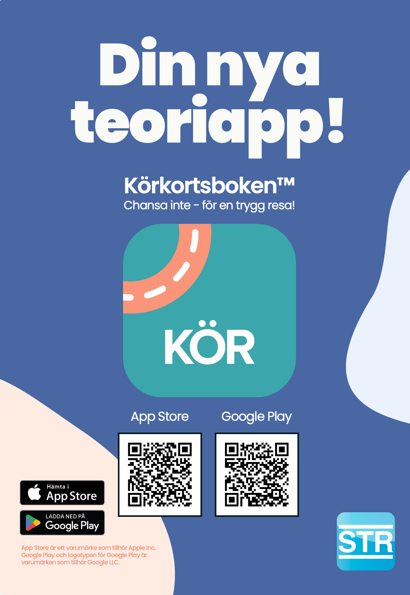 Körkortsboken är den officiella appen från STR och består av den digitala produkten Körkortsboken där du kan plugga din körkortsteori. Den är kvalitetssäkrad och granskad av trafiklärare. Köps i abonnemangsform. Läs mer på korkort.nu och titta på filmen.